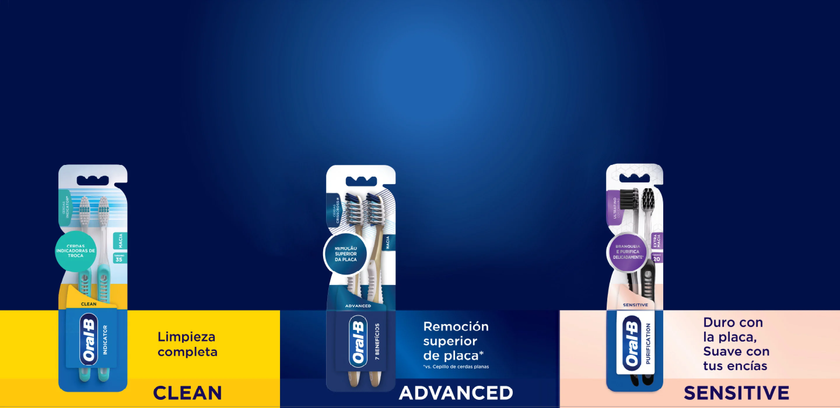 Todos los cepillos de dientes manuales de Oral-B están diseñados con dentistas, inspirados en la última tecnología de cuidado bucal y especializados para atender mejor tus necesidades únicas.